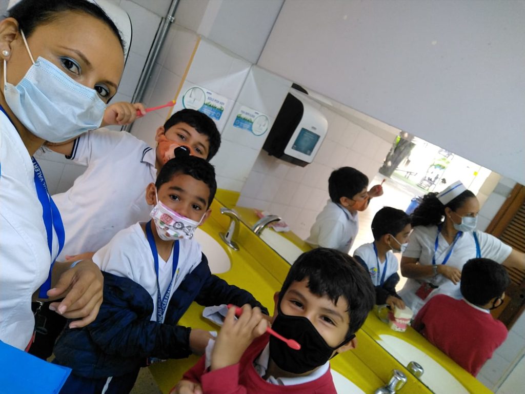 – Campaña de salud oral: 10 personas de la institución (entre personal de enfermería, auxiliares y docentes) hicieron el curso docente líder de Colgate, el cual les permite realizar capacitaciones a los estudiantes. Gracias a esto, y con el apoyo de esa organización, se empezaron a realizar las inducciones en cada salón de preescolar y primaria para la prevención de la higiene oral.