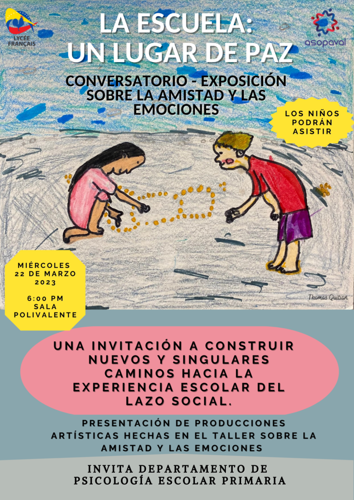 En un primer tiempo, llevaron a cabo un taller filosófico sobre la amistad apoyándose de la historia “La Otra Orilla” de Marta Carrasco y de una interpretación con un teatrino. Con esto, se abrió un debate filosófico sobre el tema y los niños lograron trabajar sobre el concepto de amistad que implica: la confianza, la solidaridad, el esfuerzo, asumir riesgos, renunciar, el perdón, ceder, aceptar las diferencias y saber sobrellevar las dificultades propias de la socialización a nivel escolar.